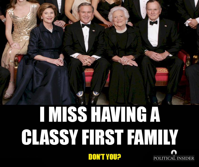 Because right after THAT whole disaster, a post of a SISTER of mine (no, not Texas) shows up in my feed. She'd posted a picture of the Bush family in evening attire, with the caption, "Remember when our presidents were classy?"